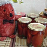 Просмотрела кучу рецептов помидорок, но вот такого, как мой, не нашла. Хотя честно признаюсь, что по поиску дошла только до 80 страницы, где уже не было даже помидор в рецептах. Был один с морковной ботвой, но тоже не то... Поэтому выставляю на свой страх и риск. Помидорки от свекрови, закатываю только второй год, но разлетаются на ура. Очень вкусные, сладковатые и немного ядреные. Расчет идет на 1 литровую банку. Соответственно, если 3 -литровая, увеличиваем втрое.