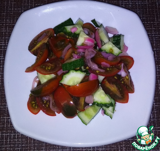 Наташа! Принимай мой фотоотчёт! Вкусный, свежий, сочный салат! Нам очень понравился! Вместо репчатого лука я добавила зелёный!