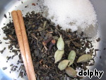 В кастрюлю положите чай, кардамон, корицу, гвоздику и сахар. Добавьте 1,5 стакана холодной воды.