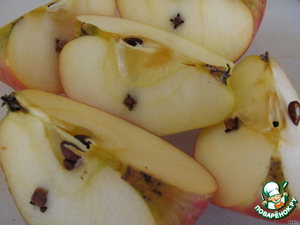 • Для того, чтобы приготовить яблочный сидр, нет необходимости очищать яблоки от кожуры и сердцевины. Просто разрежьте их на 4 части и воткните в мяколь гвоздику.
