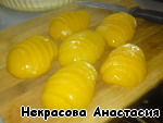 Персики выкладываем в сито, чтобы стек весь сироп, а потом режем!