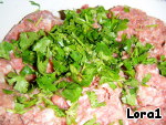 2. Фарш посолить, поперчить, добавить мелко рубленую кинзу (кто не любит, можно заменить на петрушку).
