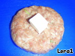 6. Из фарша формуем шарик влажными руками, приплюснуть в ладонях, выложить на середину брынзу и сформировать тефтельку.