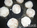 7. Каждую тефтелю обвалять в муке и выложить в сковороду, где тушился лук-порей, быстро обжарить со всех сторон до румяной корочки.