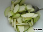 Яблоки нарезать и сбрызнуть лимонным соком.