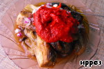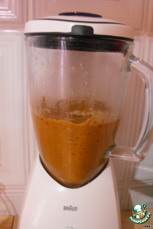 Затем добавила томатную пасту, острый перец, оливковое масло, соль.