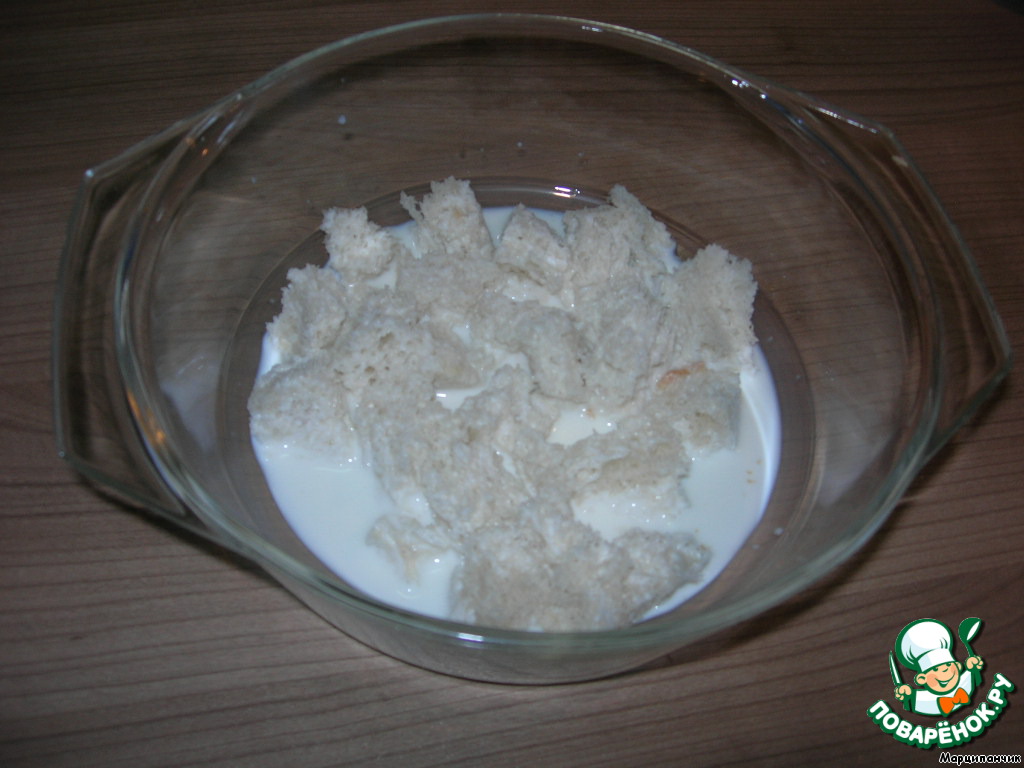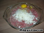 смешиваем лук, фарш и 1 яйцо, замоченный в молоке хлеб, перчим, солим по вкусу.