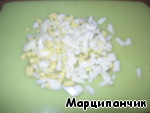лук почитстить и мелко нарезать (можно с фаршем пропустить через мясорубку)