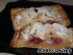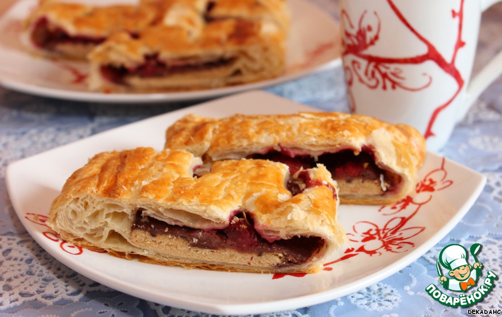 Рецепт «Штрудель из слоеного теста с вишнями и пудингом»: