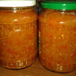 Съели почти все за зиму, осталась одна баночка. Аджика получилась довольно острая, хоть я добавила 3 перчика чили, а не 4. Мед никто не заметил, хоть муж его ненавидит, а слопал три банки