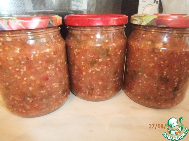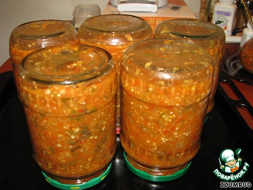 В результате оказалось, что для крупно порезанных баклажанов 40 минут варки с дополнениями недостаточно. Долго думать не стала "отблендира " от души всю кастрюлю, проварила минут еще 20 для спокойствия души и разложила по банкам. Хакатала, перевернула, укутала, пусть доходят.