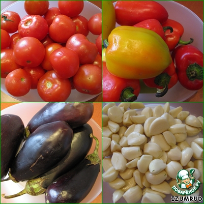 • На мясорубке перекрутить помидоры, чеснок и все перцы.