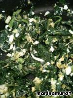 Добавляем к шпинату яйцо и жарим еще минутку.