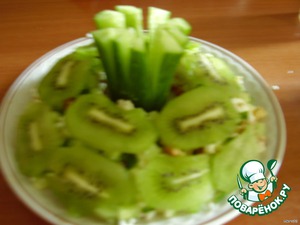 Обложите кольцами киви. Если вставить в центр пальму из огурца - получится остров. Такое оформление нравится моим девочкам.