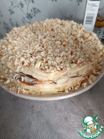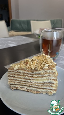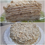 [+5]Вкусный, нежный торт. Немного рвались коржи при укладке на сковороду и при переворачивании, но мне это как то не помешало.