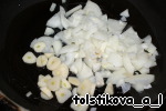 Очистить и обжарить лук и чеснок.