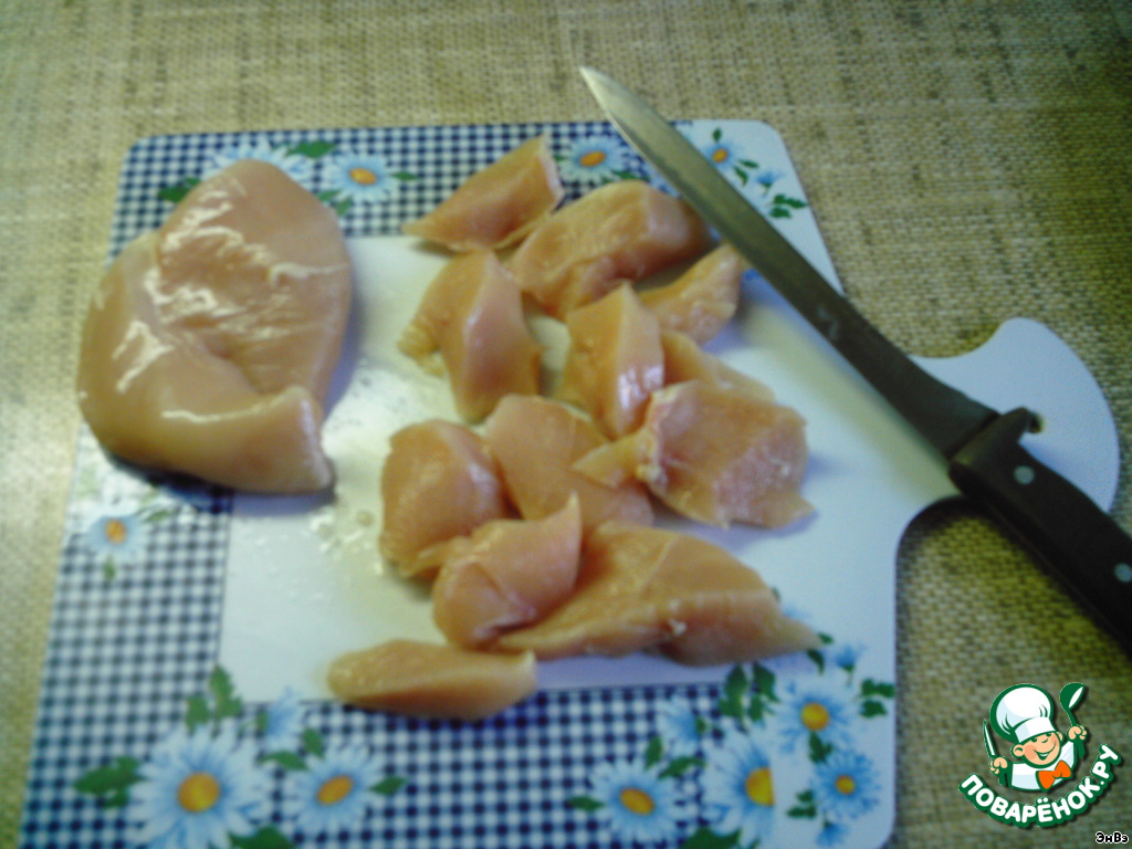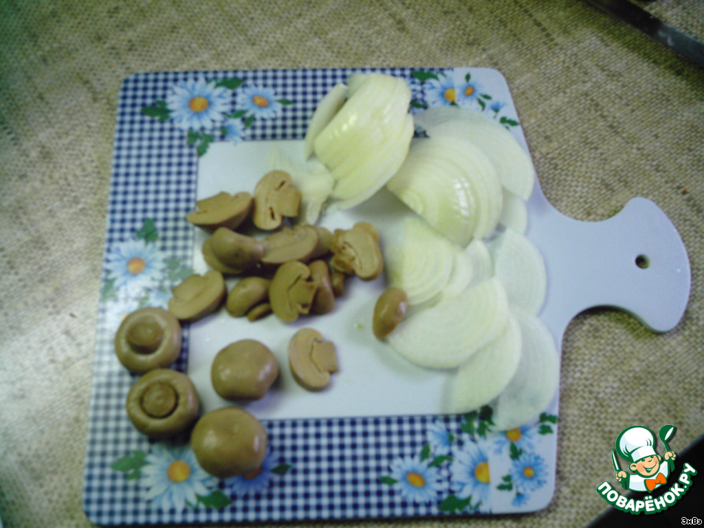 - Грибы (шампиньоны консервированные или свежие) — 1 бан.