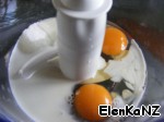 В миксер кладем яйца, сахар, ванильную эссенцию, молоко и сливочное масло, взбиваем.