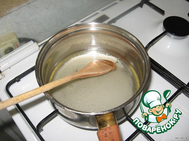 Уксус, растительное масло и сахар нагревать на огне до растворения сахара. Снять с огня.