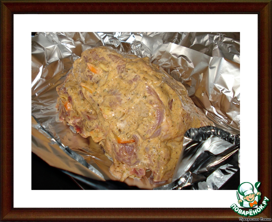 Делаем соус для обмазывания окорока. Смешиваем аджику, перец, соль, майонез и хмели-сунели. |