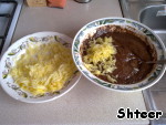 Постепенно добавляем мучную смесь (в несколько этапов), тесто по консистенции как густая сметана. Хорошо все перемешать - комочков быть не должно!