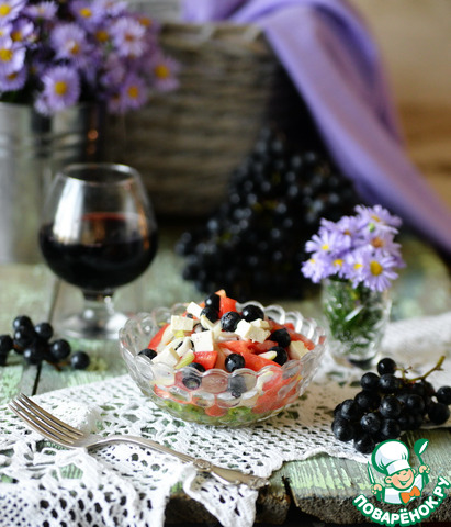 Очень интересный салат для любителей смешивать фрукты, овощи и сыр...