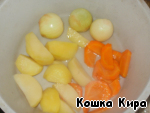 • Лучок (лучше брать не крупный) очищаем, моем и кладем целиком. -