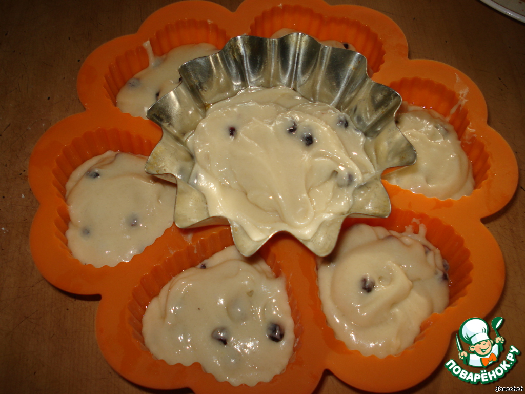 Разложить в формочки. Выпекать при температуре 180 градусов .