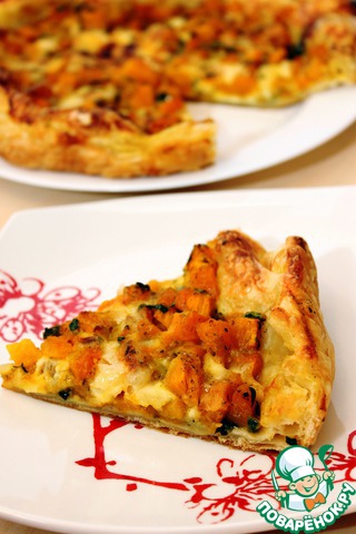 Хрустящие пирожки из слоеного теста с начинкой, компоненты которой прекрасно дополняют друг друга. Содержимое пирожков состоит из ароматной тыквы и острого сыра с голубой плесенью.