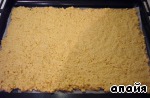 Духовку нагреваем до 190°C, противень застилаем бумагой и смазываем ее сливочным маслом. Выкладываем на противень и разравниваем готовое тесто на всю его ширину. Выпекаем 15 минут.