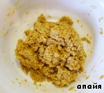Овсяные хлопья с орехами перемалываем в блендере, добавляем муку и соду. Продолжая растирать, добавляем по одному яйца, растираем пока сахар не растворится. Добавляем масло с сахарной смесью и даем смеси постоять 10 минут.