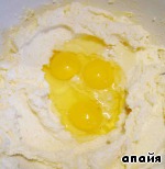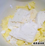 В размягченный при комнатной температуре маргарин (не растапливать) положить творог и хорошо все размять.