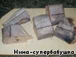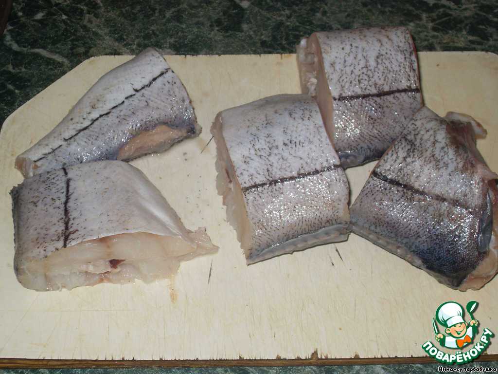 Нарезать рыбу на порционные куски.