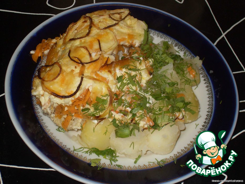 Рецепт «Рыба под морковным одеялом»: