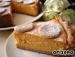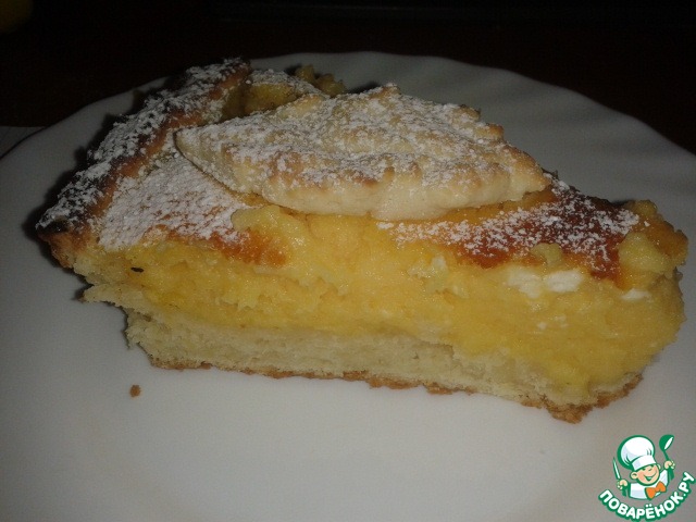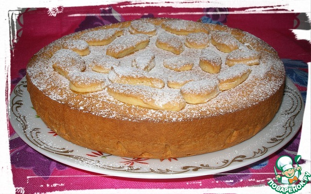 Затем снять бортик, пирог аккуратно переложить на блюдо. Слегка припорошить сахарной пудрой. Нарезать, когда остынет полностью.