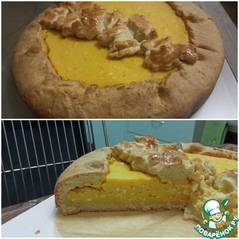 думала, что использовала последние два яйца (добавила в тесто их) и начинка не получится, а магазин у нас в 3км и что пирог с тыквой (которую любят мои дети исключительно с рисовой кашей) не получится