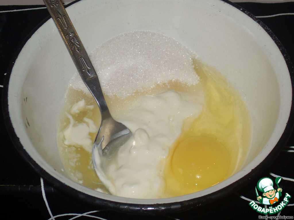 Взбить яйцо, сметану, сахар и соль до растворения последних.