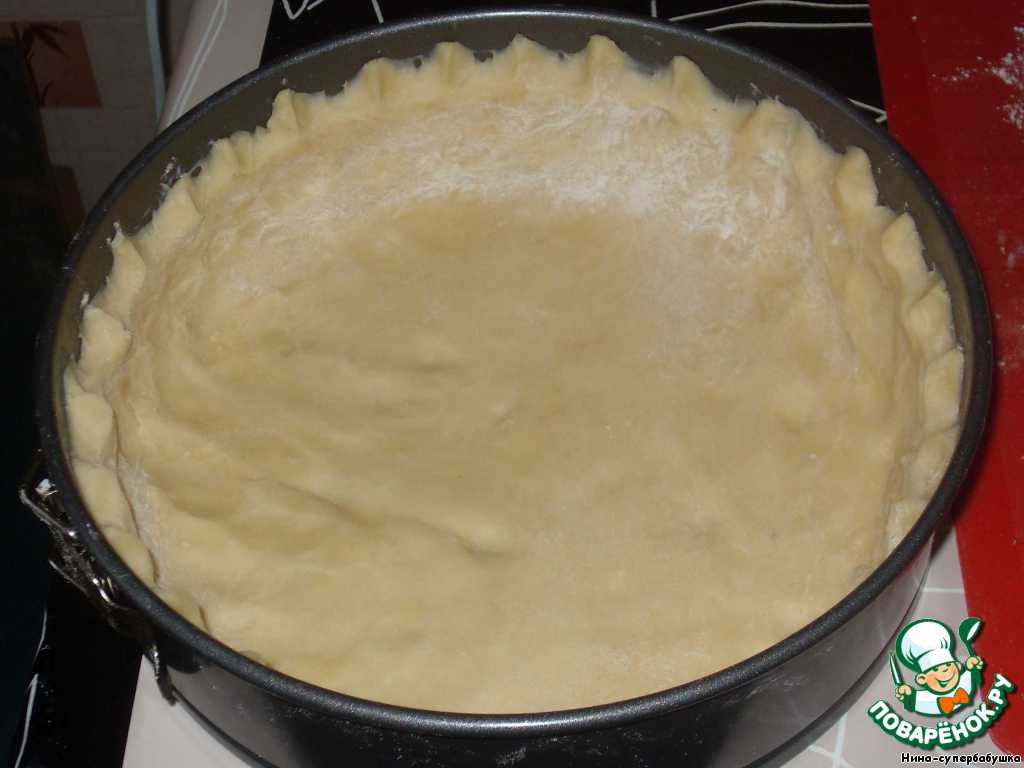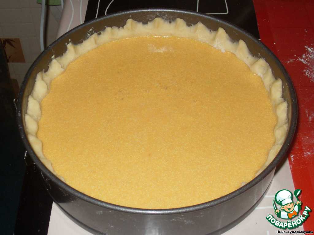 Тесто раскатать (небольшой кусочек отложить для украшения), выложить в разъемную форму, смазанную маслом. Оформить высокий бортик.