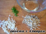 Сделать заправку - соединить чеснок, грецкий орех и перец чили с растительным маслом.