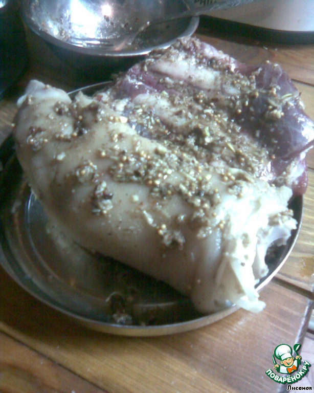 Обмазать этим соусом ногу и ребра, дать постоять еще 30 минут.