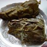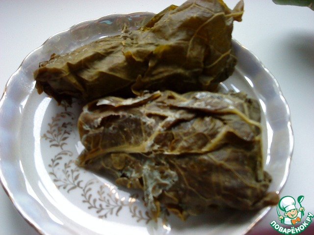 Свернуть листья рулетом так, чтобы сыр был сверху.