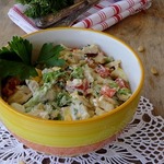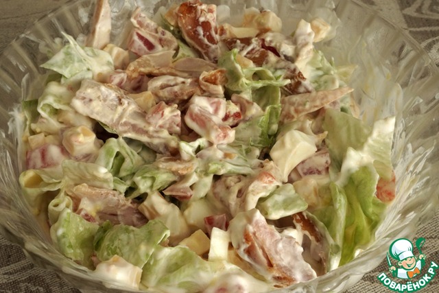Если надо быстро сытно перекусить, можно приготовить такой вот салат. При этом калорий в нем не так уж и много...