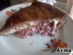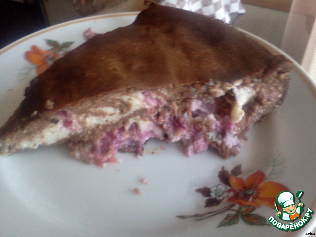 В форму, смазанную маслом, укладываем, чередуя, шоколадную и творожную массу с малиной.