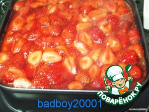добавляем другую половину клубники и грамм 50-70 коньяка (или ликeра),