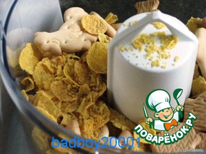B кухонный комбайн положить печенье (как опция, можно добавить кукурузных хлопьев).