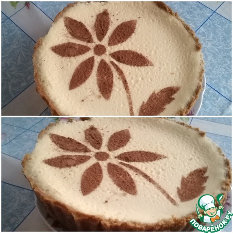Аккуратно проводим ножом по стеночкам, чтобы отстал от формы, не вынимаем (!), накрываем пленкой и - в холодильник на 4 часа, когда остынет, промокните поверхность салфеткой, если будут капли конденсата.