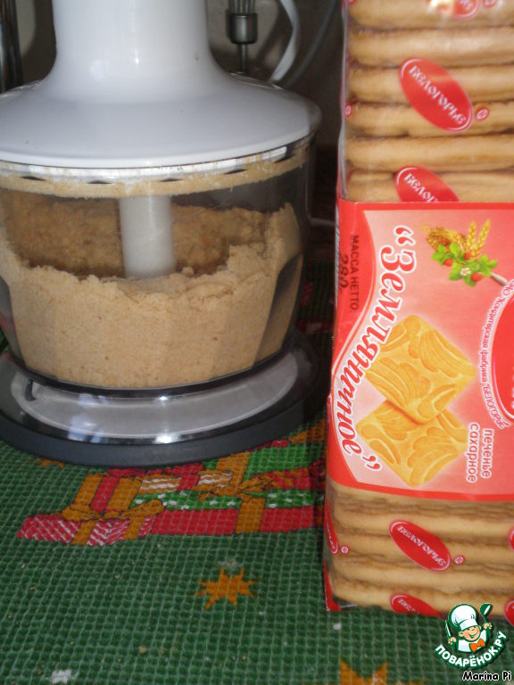 Измельчить печенье блендером в мелкую крошку, добавить корицу.