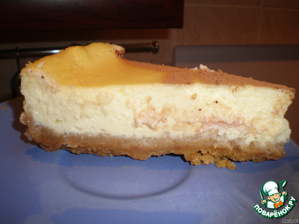 Впервые увидела это чудо в сериале "Друзья". С каким упоением его поедали герои сериала! Это надо видеть! Долго искала рецепт на бескрайних просторах Интернета. Нашла! Получилось именно то, что хотелось! Сложно сказать, на что похож этот "сырный пирог", у него свой, абсолютно неповторимый вкус, ни на что не похожий. Этот рецепт попросили все, кто попробовал мой чизкейк. Попробуйте, возможно и для Вас он станет любимым!