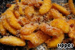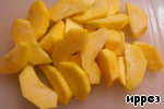 Почистить яблоки от кожуры и семян, порезать на дольки 1,5-2 см толщиной, сложить в посуду, полить лимонным соком.