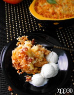 Подавать крамбль тёплым, с мороженым или со взбитыми сливками.